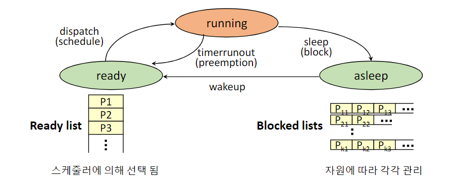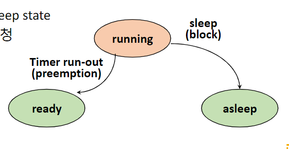 > 프로세서를 뺏겨서 쫓겨나면 preemption이라고 한다.