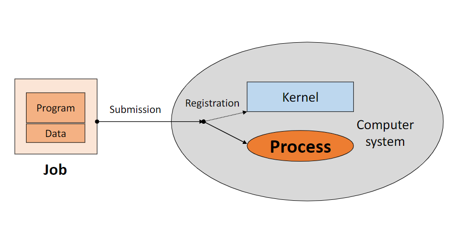 > 실행을 위해 시스템(커널)에 등록된 작업