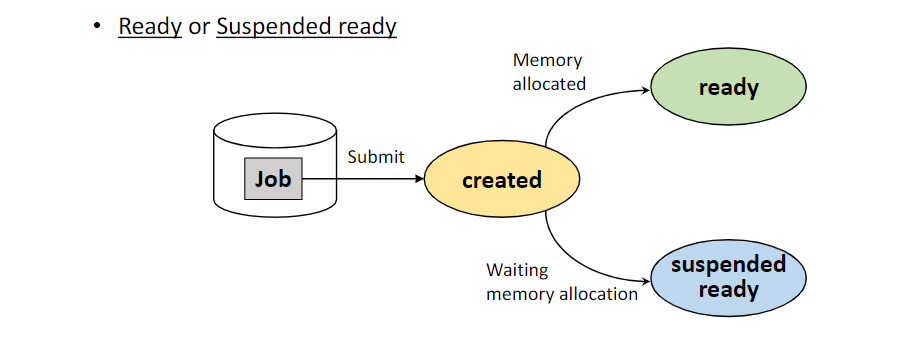> 가용 메모리 공간 체크 및 프로세스 상태전이(Ready or Suspended ready)