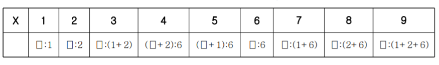 X는 그릇에 담는 물의 무게이고, ⎕은 그릇을 나타낸다.
