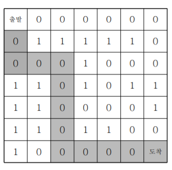 출발점은 격 자의 (1, 1) 좌표이고, 탈출 도착점은 (7, 7)좌표이다.