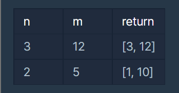예를 들어 두 수 3, 12의 최대공약수는 3, 최소공배수는 12이므로 solution(3, 12)는 [3, 12]를 반환해야 합니다.