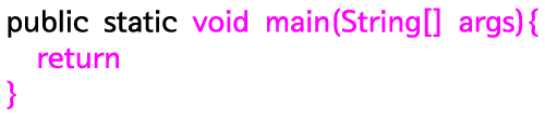 여러분이 만들고 싶은 프로그램이 있다면 여러분은 반드시 public static void main(String[] args)가 이끄는 중괄호 안에 실행되기를 기대하는 로직을 위치시켜야 한다.