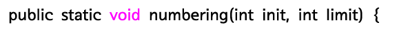 만약 반환 값이 없다면 아래와 같이 void를 적어준다.