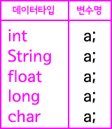 예를 들어서 변수 a는 변수가 담을 수 있는 데이터 타입에 따라서 아래와 같이 다양한 형태로 선언된다.