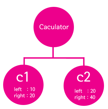 c1.sum의 결과는 30, c2.sum의 결과는 60인 것을 통해서 알 수 있듯이 상태가 다른 객체를 대상으로 메소스를 실행시키면 다른 결과를 나타내게 된다.