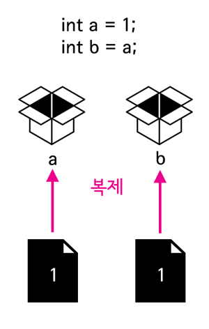 변수 b의 값에 변수 a의 값이 복제된 것이다.